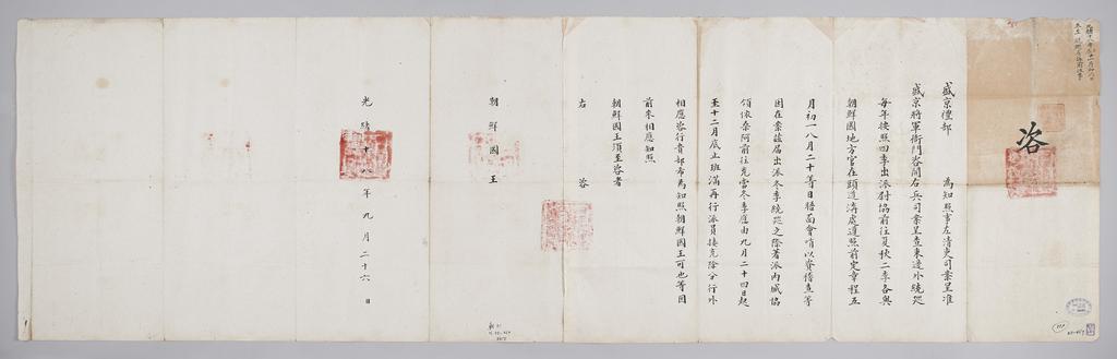 | Keywords: 조선-청 외교문서(자문) 338.jpg 고종 29년 1892 9월 26 에 청국 예 에 조선국왕에게 보내 온 문 올해 동계 통 에 내성 협령 상아 桑阿 를 파견 다고 알리는 내용 다 통 기는 9월 24 에 12월까 다 2016-07-20 http //www nl go kr/nl/search/SearchDetail nl category_code ct service KOLIS vdkvgwkey 1130283 colltype DAN_OLD place_code_info 172 place_name_info EB 94 94 EC A7 80 ED 84 B8 EC 97 B4 EB 9E 8C EC 8B A4 manage_code MA shape_code B refLoc null category srchFlag Y h_kwd E5 8F A4 E6 9C 9D51- EB 8B A428-467 lic_yn N mat_code RB 국립중앙도 조선국왕 청국예 other versions PD-Art Books from National Library of Korea Books from Korea 1892 in Relations of the Joseon Dynasty and the Qing Dynasty |