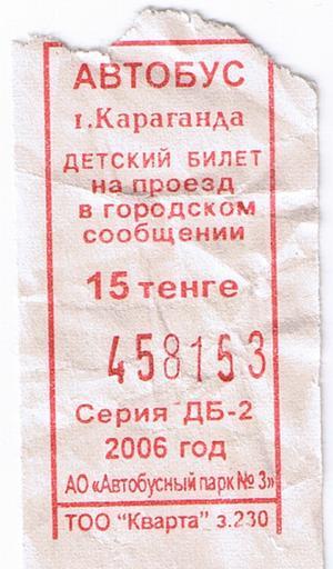Keywords: Детский билет.jpg en Karaganda Kazakhstan city bus ticket 2006 ru Автобусный билет г Ка аганда 2006 г own Wassily Transport in Karagandy Bus tickets of Kazakhstan Images by Wassily