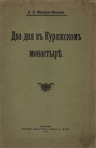 | Keywords: Макарова-Мирская А.И. Два дня в Куряжском монастыре. (1913). — Тит. лист.jpg http //www ozon ru/context/detail/id/18265832/ Image page PD-RusEmpire Aleksandra Makarova-Mirskaya Books from Russia 1913 Books published in Kharkiv Media of Russia to be categorised by subject Title pages uploaded by Steven Pavlov from various sources Title pages from Ukraine | ||||