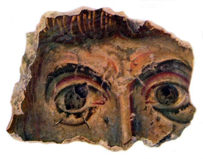 | Keywords: Десятинна церква, X ст. Десятинна церква - перша велика споруда Києва, оздоблена мозаїками та фресками. З її багатого художнього оснащення збереглося лише кілька невеличких фрагментів монументального малярства, за якими не вгадується розпис загалом. Однак фрагмент верхньої частини обличчя невідомого святого вражає винятковою майстерністю гармонійного узгодження теплих і холодних кольорів. Динамічно окреслені брови, великі виразні очі засвідчують високий рівень лінієведення, основу якого становлять закладені глибинні творчі традиції. Насичені, сміливо зіставлені кольори сповнюють образ емоційним піднесенням, специфіка пластичного об'єму передана лише живописними засобами. Д.П. Крвавич, В.А. Овсійчук, С.О. Черепанова - Українське мистецтво, т.2, Львів, "Світ", 2004. - с. 143, іл. 177. |