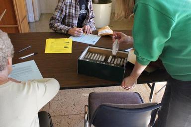 | Keywords: Inspection stations. Films are inspected, leader added when necessary, and participants are encouraged to talk with the staff about their movies and ask questions. Home Movie Day 2015 in Raleigh, NC. Saturday, October 17, 2015, at the State Archives of North Carolina. Photo by Georgia Ponton. Inspection stations. Films are inspected, leader added when necessary, and participants are encouraged to talk with the staff about their movies and ask questions. Home Movie Day 2015 in Raleigh, NC. Saturday, October 17, 2015, at the State Archives of North Carolina. Photo by Georgia Ponton. |