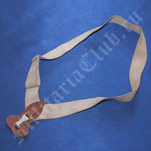 | Keywords: Оригинальный подвес светло-коричневого цвета из натуральной кожи с карабином на лицевой части и длинным текстильным ремнем, одевающимся на плечо.