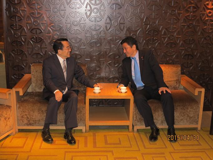 亞協李會長(右)接見日本自民黨「促進日本、臺灣經濟文化交流青年議員之會」(「日臺青年議聯」)會長岸信夫眾議員(左)一行,就增進臺日關係懇切交換意見。.jpg (4352x3264)