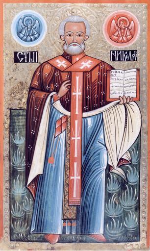 Keywords: Остання чверть XVI ст. Галичина. Дошка липова, левкас, темпера, тиснення, сріблення. 82 х 50 х 2. Saint Nicolas. Last quarter of the 16th c. Galychyna. Tempera, silvering on gesso-grounded two-piece lime-wood panel, stamping. ...Жанрова приземленість образів, широта декоративного мислення галицьких майстрів, безпосередня щирість їхнього світовідчуття зумовили яскраву самобутність тогочасного іконопису. Тенденція до подолання абстрагованої іконописної мови виявляється у прагненні іконописців передати реальні спостереження навколишнього середовища, олюднити відчужений релігійний ідеал ("Святий Микола", "Воскресіння", "Фома і Варфоломій" та ін. - друга половина XVI ст.). Лариса Членова Національний художній музей України. Альбом. Київ, "Артанія Нова", 2003 icon