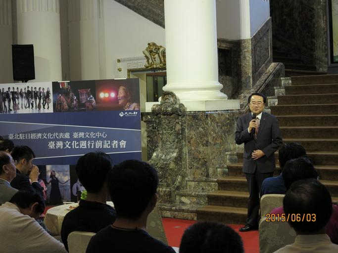 | Keywords: 亞協李會長應邀參加「臺北駐日經濟文化代表處臺灣文化中心」臺灣文化週行前記者會並致詞祝福在日本舉行之臺灣文化週順利圓滿成功。 aear20130808 亞東 關係協會 AEAR Li Jiajin at the press conference of Taiwan Cultural Center, Taipei Economic and Cultural Representative Office in Japan 20150603.jpg zh-tw 亞 係協 長 嘉 (站立 )應 出席中華民 文化部主辦的臺北駐日經濟文化代表處臺灣文化中心 臺灣文化 行前記 ,致詞 福 日 舉行之臺灣文化 順利 滿成功 2015-06-03 11 12 51 https //www flickr com/photos/101840916 N05/18443008231 亞 係協 other versions Custom license marker 2016 02 10 Association of East Asian Relations Taipei Economic and Cultural Representative Office in Japan Ministry of Culture Republic of China Press conferences in Taiwan |
