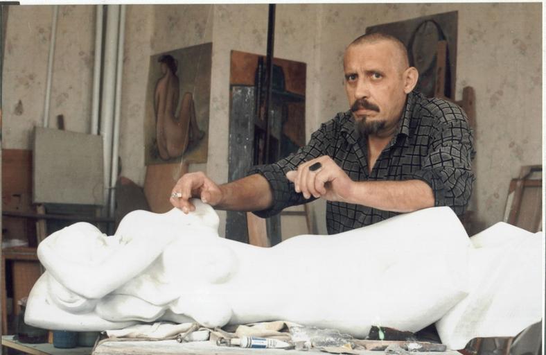 Keywords: КОЗЛОВСКИЙ КОНСТАНТИН.jpg ru а фото Козловский К в масте ской 1997 г возле своей аботы а ассвете бетон 220 см личное фото from Kozlovska Natalia 1997 Its mine file sculpture sculpture Konstantin Kozlovsky