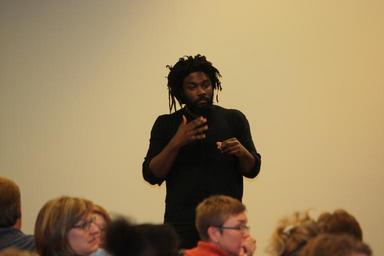 | Keywords: Award-winning author Jason Reynolds returned to Kalamazoo on Wednesday, April 13, 2016, for a Meet the Author event at Central Library. Jason recently received the prestigious Walter Dean Myers Award for Outstanding Children’s Literature, and the American Library Association’s 2016 Coretta Scott King Honor Award for outstanding African American authors. Photo by Farrell Howe. www.kpl.gov Award-winning author Jason Reynolds returned to Kalamazoo on Wednesday, April 13, 2016, for a Meet the Author event at Central Library. Jason recently received the prestigious Walter Dean Myers Award for Outstanding Children’s Literature, and the American Library Association’s 2016 Coretta Scott King Honor Award for outstanding African American authors. Photo by Farrell Howe. www.kpl.gov |