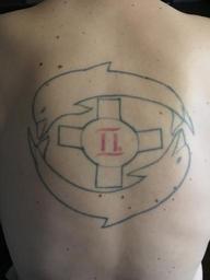 Keywords: Two Dolphins (Infinity, connection between Absolute Love and Materiality) Cross (Sun, Portal). Twins (Connected Two Halves of My Heart=LOVE)