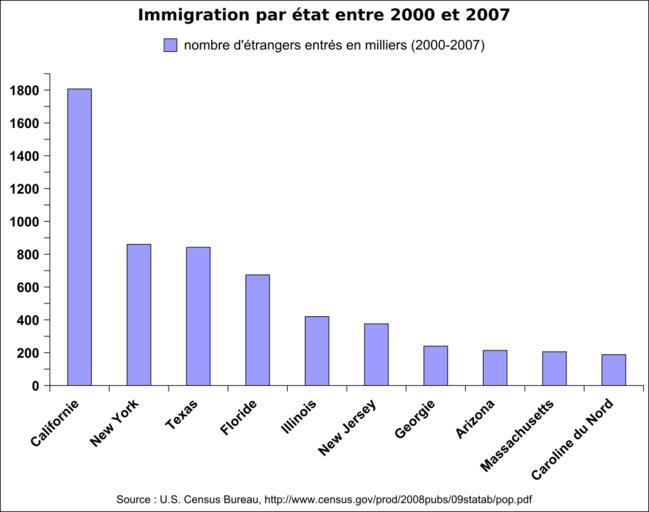 Keywords: Immigration par etat 2000-2007.svg fr Nombre d'entrées d'étrangers par état entre 2000 et 2007 en milliers Source U S Census Bureau 2009 Own Urban 2009-04-26 Demographic charts of the United States