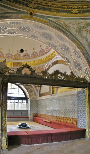 Keywords: Imperial Council Hall Topkapi 2007a.jpg Image is slightly squished please compare original components and change maybe elongate slightly to give better impression The Imperial Council Hall Kubbealtı / Divan-ı Hümâyûn where the veziers met in council with the sultan The hearth in the middle was to warm the officials The golden window enabled the sultan or the valide sultan to eavesdrop into the conversation without being noticed Own 2007-07 Gryffindor Autostitch 100px 100px 100px 100px 100px Interior of the Imperial Council Topkapı Palace Frescos in Istanbul Topkapi Diwan Windows in Istanbul Topkapi Diwan Divans furniture |