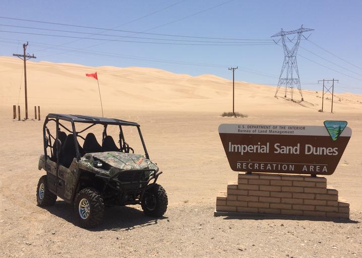 Keywords: dunes sand dunes sanddunes ohv public lands publiclands outdoors recreation nature landscape sand atv motorcycle motorcycle riding motorcycleriding 4-wheeler 4wheeler california desert discover the desert discoverthedesert solitude fun adventure wilderness blmcalifonia outdoor Situated east of the Imperial Valley agricultural region, the Imperial Sand Dunes Recreation Area is bordered to the west by the Coachella Canal, a waterway diverting Colorado River water to fertile agricultural lands further north. A major east-west route of the Union Pacific railroad skirts its eastern edge, a time-worn testament to the impediment the dunes once played to travel between San Diego and Phoenix. The dune system consists of three areas. The northernmost area is known as Mammoth Wash. This open area allows OHV use and offers a more isolated experience. South of Mammoth Wash is the North Algodones Dunes Wilderness. Established in 1994, this area is closed to all mechanized traffic, so access is by foot or on horseback only. Here you will find endless miles of quiet solitude. The southernmost boundary of the Wilderness is State Highway 78; just south of this highway the largest and most heavily used dunes are found. With some restrictions, these primary dunes may be traveled south toward the Mexican border. Photo by Michelle Puckett, BLM. Situated east of the Imperial Valley agricultural region, the Imperial Sand Dunes Recreation Area is bordered to the west by the Coachella Canal, a waterway diverting Colorado River water to fertile agricultural lands further north. A major east-west route of the Union Pacific railroad skirts its eastern edge, a time-worn testament to the impediment the dunes once played to travel between San Diego and Phoenix. The dune system consists of three areas. The northernmost area is known as Mammoth Wash. This open area allows OHV use and offers a more isolated experience. South of Mammoth Wash is the North Algodones Dunes Wilderness. Established in 1994, this area is closed to all mechanized traffic, so access is by foot or on horseback only. Here you will find endless miles of quiet solitude. The southernmost boundary of the Wilderness is State Highway 78; just south of this highway the largest and most heavily used dunes are found. With some restrictions, these primary dunes may be traveled south toward the Mexican border. Photo by Michelle Puckett, BLM.
