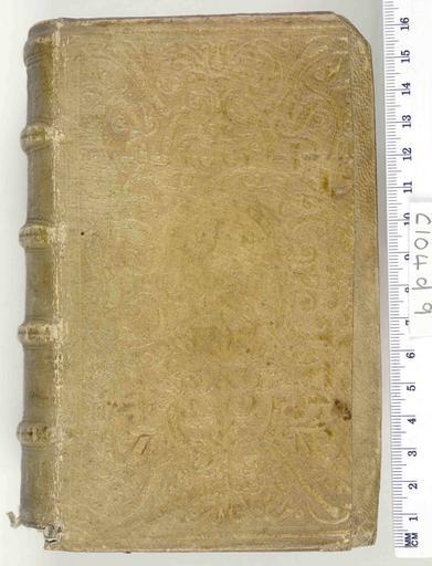 | Keywords: In Erotemata dialectic ...Philip. Melanchthonis - Upper cover (c104d9).jpg  Style Armorial Panel design; Caption Upper cover; Colour White / cream; Edge Unspecified exhibition history Decorative Technique Tooled in blind Panel stamp in blind; Cover Material Pigskin alum tawed Wooden boards Stamp features the coat of arms of Wittenberg 6 raised double bands top and tail band incorporates end bands Macchi states; bound during the last quarter of the 16th century in Tübingen by a Samuel Streler successor The panel stamp appears in Tübingen in several variants Ilse Schunke considers a variant the work of Samuel Streler whose name was recorded at Tübingen university in 1550 and who worked for Duke Christoph His activity is certified until 1577 but his workshop was active until 1618 Similar panel-stamp bindings are kept in 1 Berlin National Library A Schmidt Bucheinbände aus dem 14 -19 Jahrhundert pl XLVIII p 23 fig 74 on Handlungen Des Allgemeinen Concilumbs Wolches gehalten worden vber dem Span Tübingen Georg Gruppenbach 1582; Idem p 24 pl XLIX fig 76 on Hieronymi Cardani Mediolanensis medici de vtilitate ex adversis capienda libri III Basileae per Henricvm Petri 1561; 2 München National Library on Michael Maestlin Ephemerides novae Tübingen 1580 shelfmark 4° Eph astr 67 F Geldner Bucheinbände aus elf Jahrhunderten pl LXVI fig 92 ; 3 Rome Biblioteca Angelica on Martin Crusius Civitas coelestis seu Catecheticae conciones Tubingae apud Georgium Gruppenbachium 1587 shelfmark o 4 33 Ludwig III coat-of-arm Biblioteca Angelica Roma Legature di pregio p 48 n 22 ; 4 Schweinfurt Municipal Library M Hahn Schweinfurts Drucker Buchbinder und Buchhändler col 643 pl 22 For further bibliography see A von Arnim Einbandkunst n 67 on Abraham Buchholzer Chronologia Görlitz A Fritsch 1584; Collegio Borromeo Pavia Legature rinascimentali e barocche p XXXII n 58 on Cicero M Tullius Epistolarum ad familiares libri XVI apud Petrum Santeandrum 1580; F Geldner Pfalzgrav Philipp Ludwig von Neuburg 1574-1614 pl 8; E Ph Goldschmidt Gothic and Renaissance bookbindings n 254 on Valerius Maximus Antwerp Plantin 1574; E Kyriss Katalog historischer Einbände n 23 with reproduction; K Haebler Rollen- und Plattenstempel II p 90 panel-stamps III and V; I Schunke Studien zum Bilderschmuck p 72 Samuel Streler Another version produced in Lauingen by Hans Wagner in 1582 is recorded Antiquariat Konrad Meuschel Bad Honnef am Rhein Seltene Bücher p 16-17 n 20 on Cicero De officis De senectute De amicitia Paradoxa Somniun Scipionis Basel ex officina Herwagiana 1584; L Gruel Manuel historique et bibliographique 1905 p 172-173; K Haebler Rollen- und Plattenstempel H W Hans Wagner Lauingen p 482; A Schmidt Bucheinbände aus dem 14 -19 Jahrhundert p 24 pl XLIX fig 77 on Educationis puerilis lingvae Latinae pars prima Argentorati Josias Rihelius 1583 p 24 pl XLIX fig 78 on Strigilis grammatica Argentorati 1585 M von Arnim Einbände n 46 on Martin Luther Ein einfeltige weise zu beten für einen guten Freund Leipzig Valentin Baptist 1551 informs about a similar panel-stamp to be seen on a cover binding bound in Saxony object history Text 1579; Neustadt; Unspecified object type Cc-zero place of creation Binding Germany place of discovery Unspecified British Library image http //www bl uk/catalogues/bookbindings/LargeImage aspx RecordId 020-000004508 ImageId ImageId 41859 Copyright BL In Erotemata dialectic Philip Melanchthonis Uploaded with GWToolset In Erotemata dialectic Philip Melanchthonis - Upper cover c104d9 http //www webarchive org uk/bldatasets/bindings/6422_4 jpg Bookbinding 16th-century bookbinding British Library Bookbindings |