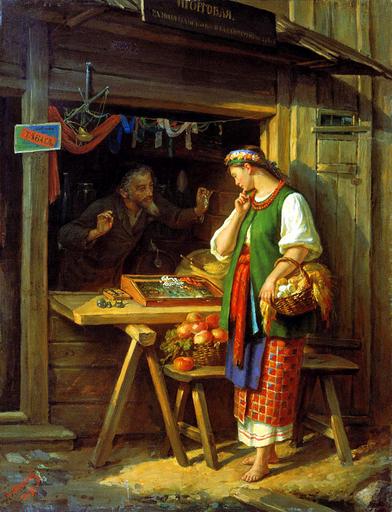 | Keywords: In the Shop 1882 by Gribkov.jpg Artwork Creator Sergei Gribkov 1882 oil on canvas cm 62 2 48 Institution Rostov Art Museum accession number object history http //artiana ru/painting/gribkov-si/4 LangSwitch Summary information about this painting Сводная инфо мация об этой ка тине http //www artsait ru/foto php art g/gribkov/img/4 other versions <gallery>«В лавке» Се гей Г ибков jpg «В лавке» Се гей Г ибков jpg</gallery> PD-Art-old-100 Sergei Gribkov Rostov Art Museum 1882 genre paintings 1882 oil on canvas paintings in Russia 1882 paintings from Russia 19th-century genre paintings from Russia 19th-century oil paintings of standing girls at full length Files uploaded by Shakko from various sources Paintings of markets Paintings of Russian women in national dress Shopping in art Shops in art Trade in art Vendors in art |