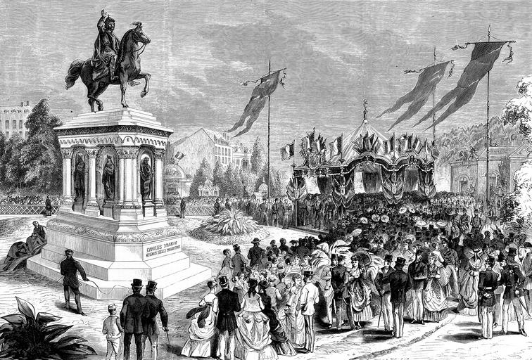 | Keywords: Inauguration de la statue de Charlemagne à Liège.jpg Charlemagne Boulevard d ™Avroy in Liège Belgium 26 July 1868 ” <font style font-family Georgia serif >On Sunday 26 July Mr de Luesemans governor of the Province of Liège officially handed over to the administration of the city the monument erected at the roundabout of the Boulevard d ™Avroy A large and elegant pavilion had been erected opposite to the statue which was veiled to the eyes of passersby Everyone was there the aides-de-camp of Leopold II the rector of the University the professors of the faculties the magistrates the director of the Academy of Fine Arts the president of the Archaeological Institute The statue was made by Louis Jehotte Belgian sculptor born in Liège on 7 November 1803 died in Brussels on 3 February 1884 professor of sculpture at the Academy of Fine Arts of Brussels </font> Charlemagne Boulevard d ™Avroy à Liège Belgique le 26 juillet 1868 ” <font style font-family Georgia serif >Le dimanche 26 juillet Monsieur de Luesemans gouverneur de la province de Liège a remis officiellement à l ™administration de la ville le monument érigé au rond-point du boulevard d ™Avroy Un pavillon vaste et élégant avait été dressé face à la statue voilée aux regards des passants Tout le monde était là les aides de camps de Léopold II le recteur de l ™Université les professeurs des facultés les magistrats le directeur de l ™Académie des beaux arts le président de l ™Institut archéologique La statue a été réalisée par Louis Jehotte sculpteur belge né à Liège le 7 novembre 1803 décédé à Bruxelles le 3 février 1884 professeur de sculpture à l ™Académie des Beaux-Arts de Bruxelles </font> 1868 L ™Univers illustré france 1 1868 8 8 p-page 496 draughtsman Jules Pelcoq <br> engraver Creator Charles Maurand other fields wood engraving Information field Size Size cm 24 34 bottom right JULES PELCOQ C MAURAND Not visible on the scan Information field Original caption Inauguration du monument de Charlemagne à Liège le 26 juillet 1868 Dessin d ™après nature de M Jules Pelcoq Voir page 497 Dodeeric PD-old-70-1923 Carolus Magnus Statue of Carolus Magnus in Liège Belgium in the 1860s 1868 in Belgium History of Liège Historical images of Liège Old engravings of Liège L'Univers illustré Charles Maurand Wood engravings Engravings by Dodeeric |