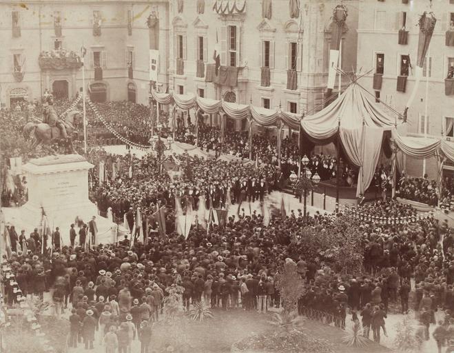 | Keywords: Inauguration Monument Vittorio Emanuele II Perugia.jpg en Inauguration ceremony of the equestrian statue of Vittorio Emanuele II on the Piazza Italia in Perugia Italy in the presence of Italian king Umberto I on September 17 1890 immediate image source http //www bibliotecabif com/concorso html 1890-09-17http //www fondazionecrpg com/joomla/index php/foto/patrimonio-artistico/7-i-dipinti-del-brugnoli/detail/21-il-ricevimento-in-onore-di-umberto-i- tmpl component Lorenzo Renzo Floriani Spoleto 1853 - Perugia 1916 PD-old-auto-1996 Italy January 1 1996 1916 Umberto I of Italy Monument to Victor Emmanuel II Perugia |
