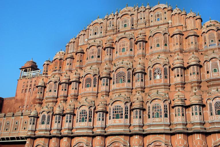 Keywords: india rajastan jaipur palace of winds pink sandstone facade architecture monument maharajah window