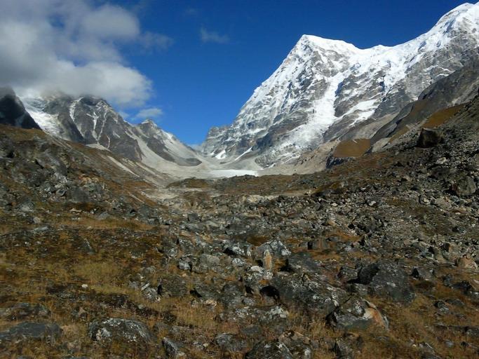 Keywords: india rathong glacier mountains snow ice landscape sky clouds tundra rocks plants nature outside country countryside