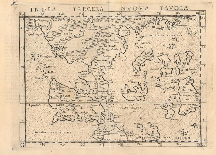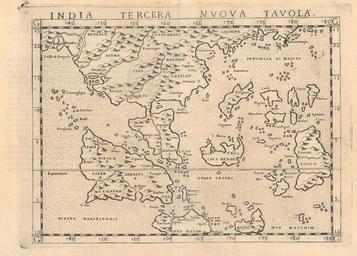 | Keywords: India Tercera Nuova Tavola.jpg  en The New Map of the Third India depicting the Indian Archipelago Indonesia and contrasted with Ptolemy's India within the Ganges India and India beyond the Ganges Indochina from Vincenzo Valgrisi's 1561 Geografia di Claudio Tolomeo printed at Venice 1561 https //www ulib niu edu/rarebooks/seamaps cfm Northern Illinois University Libraries Ptolemy other versions PD-old-70-1923 1561 maps Vincenzo Valgrisi Maps in Italian Geography Valgrisi Extra-Ptolemaic maps of East Asia 1561 |
