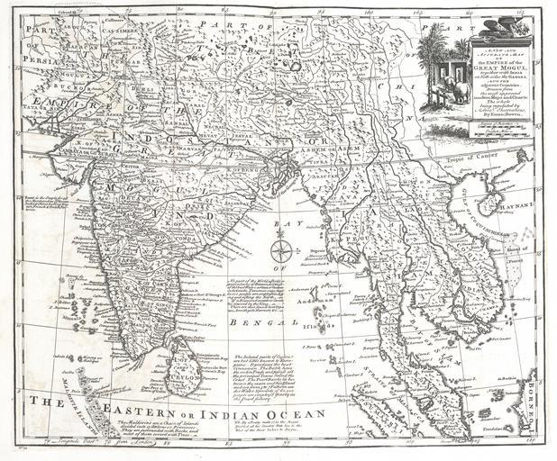 | Keywords: IndiaMapBowen.jpg  A new and accurate mapof the Empire of the Great Mogul together with India on both sides the Ganges and the adjacent countries Drawn fromt he most approved modern maps and charts The whole being regulated by Astron's observations http //beinecke library yale edu/dl_crosscollex/brbldl_getrec asp fld img id 1012285 A complete atlas or distinct view of the known world; exhibited in sixty-eight maps in which the latitude and longitude of the principal places in different countries are laid down according to the latest discoveries 1752 Bowen Emanuel d 1767 PD-old-100 Old maps of the Indian Subcontinent 1752 maps of India |