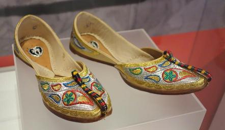 | Keywords: Indian juttis, 1992 - Bata Shoe Museum - DSC00428.JPG en Exhibit in the Bata Shoe Museum Toronto Ontario Canada The museum permitted photography without restriction 2013-07-04 11 08 11 own Daderot cc-zero Jutti in the Bata Shoe Museum Uploaded with UploadWizard Footwear of India |