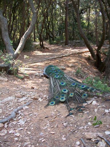 Keywords: Indian Peafowl-5.jpg A male Indian Peafowl Pavo cristatus at Lokrum isle Croatia Own 2007 László Szalai Beyond silence Own work all rights released Public domain Pavo cristatus captive male back Botanical garden on Lokrum