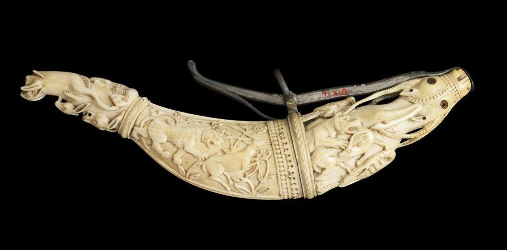 | Keywords: Indian - Primer - Walters 71418.jpg The powder flask also known as a priming flask was an essential firearm accessory and held the fine powder needed to make the gun fire Gunmakers in India during the Mughal era 1526-1858 specialized in carving ivory powder flasks with animal figures Often as these two examples the decoration consists of intertwined and composite creatures that seem to grow out of or attack one another One such menagerie on the right-hand flask includes a cheetah or lion chasing an antelope in the center and bucks antelopes lions birds a boar elephant and mongoose at the two ends Many of these animals were regularly hunted or used for hunts as with the elephant in Mughal India 18th-1st half 19th century late Mughal ivory set with amber and steel; ivory steel cm 7 22 5 3 4 accession number 71 418 2698 Demotte Paris date and mode of acquisition unknown Henry Walters city Baltimore Walters Art Museum Henry Walters Acquired by Henry Walters 1925 place of origin India Walters Art Museum license Weapons in the Walters Art Museum Indian gunpowder flasks Mughal art in the Walters Art Museum Elephants in Islamic art |