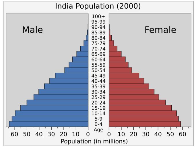 | Keywords: Indiapop-2000.svg translate yes en 2000 population pyramid of India from UN estimates World Population Prospects http //esa un org/unpd/wpp/Excel-Data/population htm The 2012 Revision 2014-08-29 own Delphi234 cc-zero Uploaded with UploadWizard Population pyramids of India |
