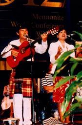 | Keywords: indonesian choir indonesianchoir choir guitar mennonite world conference winnipeg manitoba canada mennoniteworldconferencewinnipegmanitobacanada groupshot people Caption: The rich and colorful attire of the Indonesian Choir was a drawing card. Citation: Mennonite World Conference. Twelfth Mennonite World Conference, 1990, Winnipeg, Canada. Slides by T. Klassen; Script by John Dyck. X-9 Box 52 Folder 4 Slide 69. Mennonite Church USA Archives - Goshen. Goshen, Indiana. Caption: The rich and colorful attire of the Indonesian Choir was a drawing card. Citation: Mennonite World Conference. Twelfth Mennonite World Conference, 1990, Winnipeg, Canada. Slides by T. Klassen; Script by John Dyck. X-9 Box 52 Folder 4 Slide 69. Mennonite Church USA Archives - Goshen. Goshen, Indiana. |