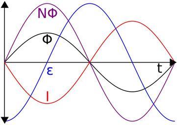 Keywords: Induction graph.svg en Graph of current which induces a flux and flux linkage which induces an emf to illustrate Faraday's and Lenz's Laws Own Sjlegg 2009-05-01 Magnetism plots