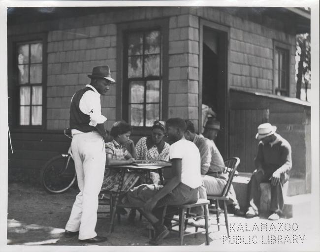 Keywords: kalamazoo public library michigan history photography infant welfare station children building gull road north street blackandwhite black and white Group of unidentified people sitting and standing outside the Infant Welfare Station No. 1. Station is on the southwest corner of Gull and North Streets. Entrance to the station is visible in the background. KPL catalogue number P-893. Group of unidentified people sitting and standing outside the Infant Welfare Station No. 1. Station is on the southwest corner of Gull and North Streets. Entrance to the station is visible in the background. KPL catalogue number P-893. |