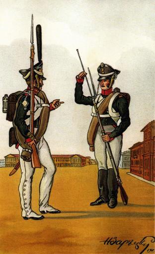 | Keywords: Infantrymen (Preobrazhensky, Sevsky, 1812) by N Zaretsky 1911.jpg Artwork Creator Nikolai Zaretsky A Grenadier of the w Preobrazhensky Regiment Life Guards Preobrazhensky Regiment summer dress; on the left and a Musketeer of Sevsky Infantry Regiment winter dress П еоб аженский лейб-гва дии полк П еоб аженского лейб-гва дии полка ru летняя фо ма; слева и мушкетё From the series The Russian Army in 1812 Из се ии «Русская а мия в 1812 году» 1911 watercolour india ink object history The reproduction of the aquarelle was published in 1912 by the Cartographical Enterprise of Aleksey Ilyin Saint Petersburg as a part of the postcard set The Russian Army in 1812 Реп одукция аква ели была опубликована в 1912 году Ка тог афическим заведением w Ильин Алексей Афиногенович А А Ильина ru г Санкт-Пете бу г в составе набо а почтовых отк ыток «Русская а мия в 1812 году» exhibition history credit line accession number cite book Военный мунди Русская а мия в 1812 году LangSwitch set of postcards набо отк ыток осква Госуда ственный исто ический музей; Да инчи ru LangSwitch the reprint of postcards issued in 1912 еп инт отк ыток выпущенных в 1912 году See below PD-RusEmpire Russian Army in 1812 by Nikolai Zaretsky 34th Infantry Regiment of Sevsk Preobrazhensky Guard Regiment Reproductions of artworks uploaded by Dmitry Ivanov Zaretsky |