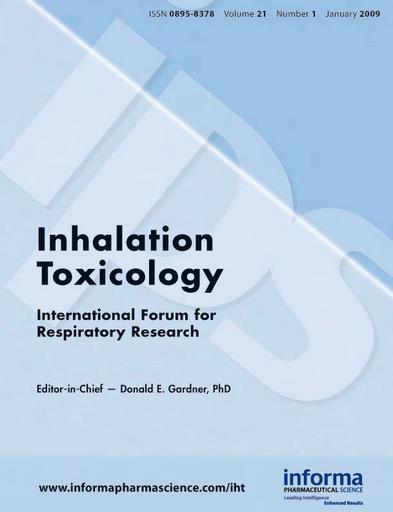 Keywords: Inhalation Toxicology.jpg en Inhalation Toxicology cover Published by Informa Pharmaceutical Science Volume 21 14 issues a year Print ISSN 0895-8378 Online ISSN 1091-7691 www informapharmascience com/iht Own James w Davis PermissionOTRS https //ticket wikimedia org/otrs/index pl Action AgentTicketZoom TicketID 2750131 Periodicals about science and technology Toxicology Respiratory system |