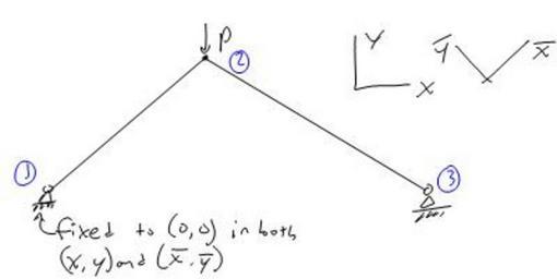 Keywords: Initial Diagram.jpg en 2 bar truss system drawn in FEA notes FEA notes Sam Miorelli Wikiversity EML4500