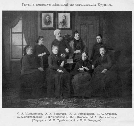 | Keywords: Initiators of Bestuzhev courses.jpg en Initiators of foundation of High Female Bestuzhev's Courses ru Инициато ы отк ытия Высших женских Бестужевских ку сов http //www lib pu ru/bbk/images/persexp/Uchrediteli-bg gif Author century 19 Andrej Nikolaevich Beketov Bestuzhev courses PD-old |