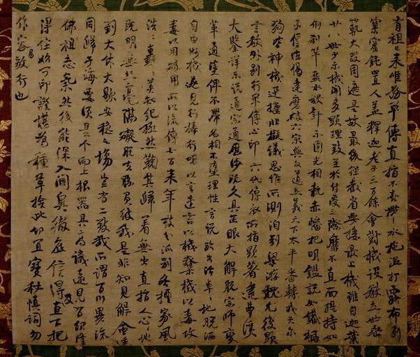 | Keywords: Inkajo.jpg en Certificate of Buddhist Spiritual Achievement 印可状 inkajō First half of an enlightenment certificate given to Yuanwu's disciple Huqiu Shaolong in recognition of his spiritual achievement Oldest extant document written by a Chan master Also known as Floating Yuanwu 流れ 悟 Nagare Engo One hanging scroll ink on paper 43 9 × 52 4 cm 17 3 × 20 6 in Located at the Tokyo National Museum Tokyo http //www emuseum jp/detail/100223/000/000 mode detail d_lang en s_lang en class 2 title c_e region era century cptype owner pos 41 num 1 Emuseum Yuanwu Keqin 1124 PD-old-100 National Treasures of Japan writings Scrolls of China Calligraphy in the Tokyo National Museum Zen Buddhism Kakemono |