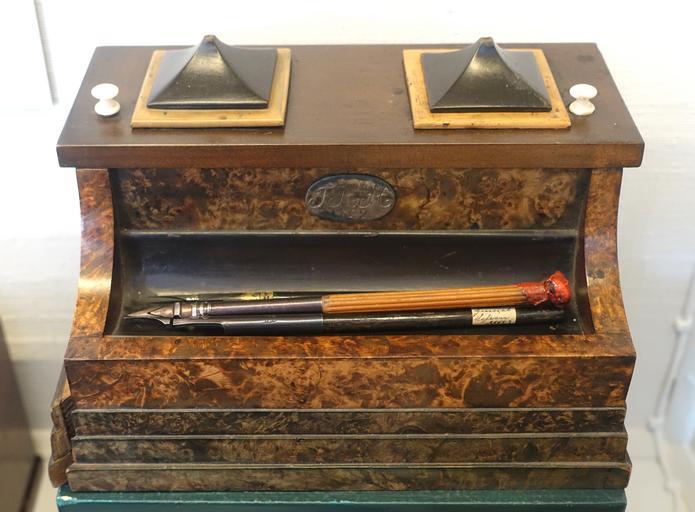 Keywords: Inkstand with plaque inscribed FHH and dated 1822, owned by chimney-sweep in Coburg, Sachsen-Coburg, Germany, alder root veneer - Nordiska museet - Stockholm, Sweden - DSC00005.JPG en Exhibit in the Nordiska museet - Stockholm Sweden This work is in the public domain because the artist s died more than 70 years ago 2014-09-13 10 33 21 own Daderot other versions cc-zero Writing tools in Nordiska museet Uploaded with UploadWizard Inkstands |