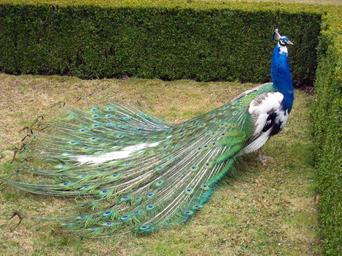 Keywords: Innsbruck 2 347.jpg Peacock at Schloss Ambras Innsbruck Austria own I took this photograph 2008-03-19 Daderot Own work all rights released Public domain Pavo cristatus captive male Pavo cristatus mut pied Gardens of Ambras Castle