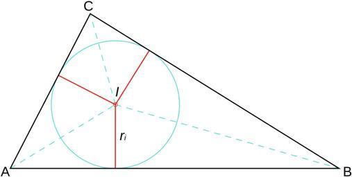 Keywords: Inradius.svg inraggio all'interno del triangolo con esplicitazione dell'incentro del incerchio e delle bisettrici Own 2008-01-26 Personline Incircles of triangles
