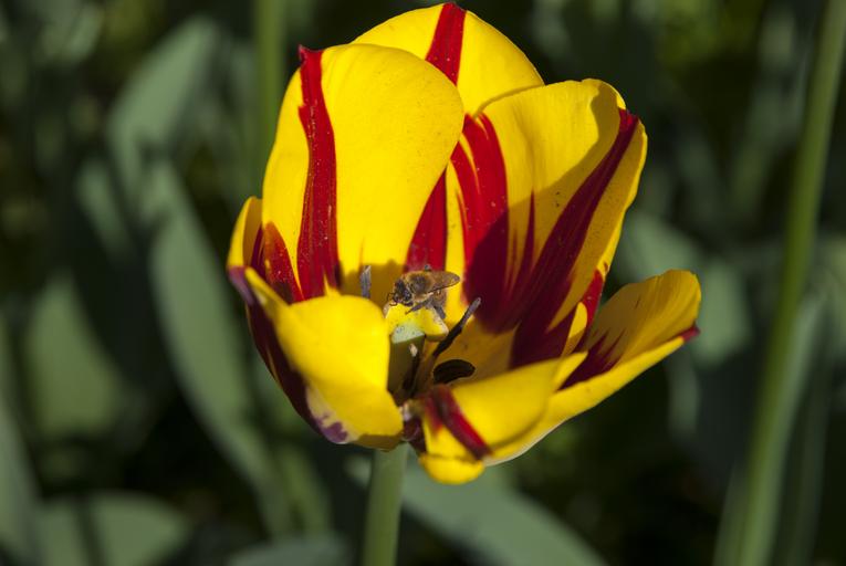 Keywords: insects flower bee nature flowers spring pollination tulip