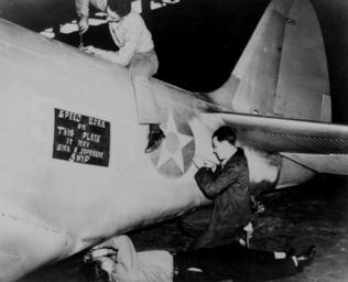 | Keywords: Inspirational message on TBD-1 Devastator at NAS Norfolk 1941.jpg A U S Navy Douglas TBD-1 Devastator of Torpedo Squadron VT-5 undergoing maintenance at Naval Air Station Norfolk Virginia USA shortly after the outbreak of World War II Note the inspirational message SPEED WORK on ThiS Plane It MAY SINK A JAPANESE SHIP on a sign on the fuselage Established as VT-7B in 1937 the squadron was redesignated VT-5 that same year Taking delivery of its first TBD-1s in 1938 the squadron operated from the carrier USS Yorktown CV-5 Following the Japanese attack on Pearl Harbor and the reassignment of Yorktown to the Pacific Fleet VT-5 participated in hit and run raids against the Gilbert Islands and Lae and Salamaua New Guinea In addition during the Battle of Coral Sea in May 1942 VT-5 Devastators attacked Tulagi in the Solomon Islands and put torpedoes into the Japanese light aircraft carrier Shoho helping to sink her Coral Sea marked the end of fleet service for the squadron http //collections naval aviation museum/emuwebdoncoms/pages/doncoms/AdvQuery php U S Navy National Museum of Naval Aviation photo No http //collections naval aviation museum/emuwebdoncoms/pages/doncoms/Display php irn 16036298 QueryPage 2Femuwebdoncoms 2Fpages 2Fdoncoms 2FAdvQuery php 1996 253 929 1941-12-16 U S Navy PD-USGov-Military-Navy Douglas TBD Devastator Naval Air Station Norfolk Pacific War in December 1941 |