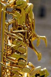 Keywords: instrument musical instrument wind instrument brass instrument saxophone saxophone detail close up analog band music close