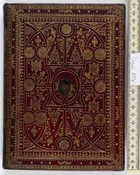 Keywords: Instruttione dei sacerdoti...tradotta...per Tomaso Galletti - Upper cover (Davis854).jpg Style Armorial All over design Floral; Caption Upper cover; Colour Red; Edge Gauffered Gilt exhibition history Decorative Technique Tooled in gold Painted; Cover Material Goatskin includes morocco turkey etc Italy c 1630 Arms not identified The book is dedicated to Attilio Brunacci Abbot of Settimo but the faded painted arms on the cover are not those of the Brunacci family Alvise Figa' Talamanca attributes this binding to Venice object history Text 1628; Venice; Unspecified object type Cc-zero place of creation Binding Italy place of discovery M M Foot The Henry Davis Gift vol III London 2010 p 432 no 363 British Library image http //www bl uk/catalogues/bookbindings/LargeImage aspx RecordId 020-000002142 ImageId ImageId 40676 Copyright BL Instruttione dei sacerdoti tradotta per Tomaso Galletti Uploaded with GWToolset Instruttione dei sacerdoti tradotta per Tomaso Galletti - Upper cover Davis854 http //www webarchive org uk/bldatasets/bindings/7178_4 jpg Bookbinding 17th-century bookbinding British Library Bookbindings |
