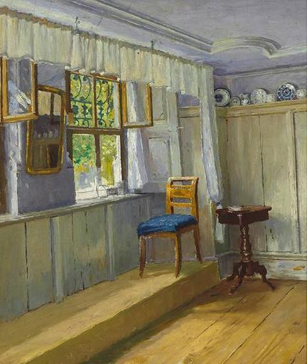 | Keywords: Interieur mit Holztäferung c1900.jpg  Interieur mit Holztäferung blauem Geschirr und Blick durch geöffnetes Fenster in den Garten oil on canvas 45 x 39 5 cm zeller de ca 1900 anonymous PD-art Living rooms in art Images from Auktionshaus Zeller 1900s interiors in art |