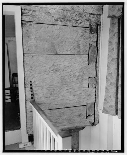 | Keywords: Interior Gilman Garrison House.jpg en Photographic view of the north corner of the Gilman Garrison House Water Clifford Streets Exeter New Hampshire second story showing original logs of the garrison house with plaster chipped away Historic American Buildings Survey Library of Congress Washington D C http //memory loc gov/pnp/habshaer/nh/nh0100/nh0145/photos/105534pv jpg L C Durette 1936-07-27 Historic American Buildings Survey Gilman Garrison House PD-USGov | ||||