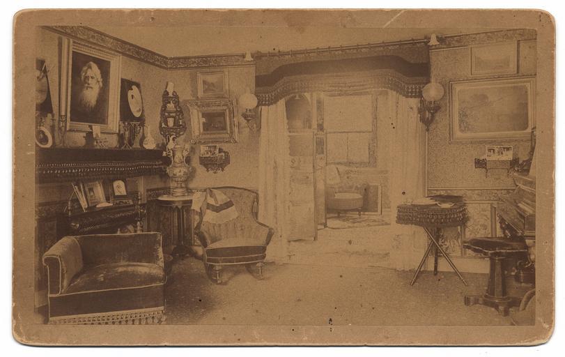 | Keywords: smithsonian institution smithsonianinstitution parlor samuel f. b. morse samuelfbmorse house new york city newyorkcity 19th century 19thcentury portrait of samuel morse portraitofsamuelmorse living room livingroom chair photograph vintage luving room luvingroom home morse's parlor morsesparlor samuel f.b samuelfb archives of american art archivesofamericanart Description: Morse's parlor. Identification on verso (handwritten): Parlor of S.F.B. Morse's house, 5 West 22 NY 1868. Portrait over mantel is of Morse, but not by him. Maybe by Joeseph Fagnani (1819-1873) who painted Morse with long beard, a portrait of the size indicated by this. RGM. Over 65 when he had a beard. Charles Lind, son of Susan Morse Lind, painted portraits grandson of S.F.B. Creator/Photographer: Unidentified photographer Medium: Black and white photographic print Dimensions: 12 cm x 20 cm Date: 1860 Collection: Macbeth Gallery Records, c. 1890-1964 Repository: Archives of American Art Accession number: aaa_macbgall_4800 Description: Morse's parlor. Identification on verso (handwritten): Parlor of S.F.B. Morse's house, 5 West 22 NY 1868. Portrait over mantel is of Morse, but not by him. Maybe by Joeseph Fagnani (1819-1873) who painted Morse with long beard, a portrait of the size indicated by this. RGM. Over 65 when he had a beard. Charles Lind, son of Susan Morse Lind, painted portraits grandson of S.F.B. Creator/Photographer: Unidentified photographer Medium: Black and white photographic print Dimensions: 12 cm x 20 cm Date: 1860 Collection: Macbeth Gallery Records, c. 1890-1964 Repository: Archives of American Art Accession number: aaa_macbgall_4800 |