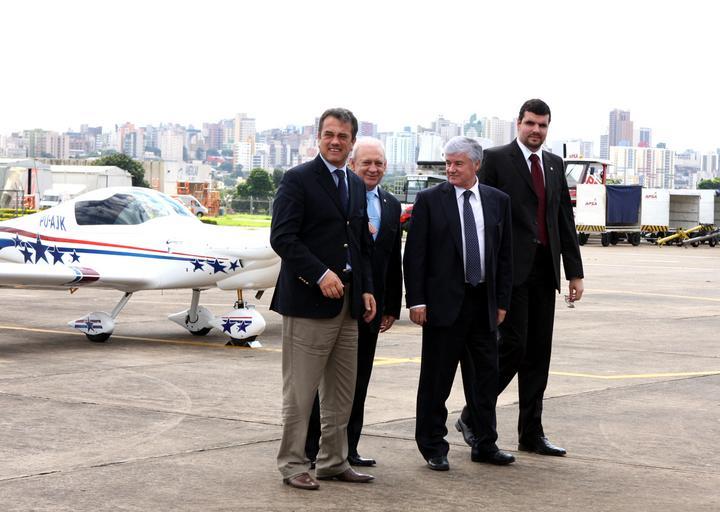 Keywords: 1º secretário da AL, Plauto Miró; deputado Ademar Traiano; presidente da AL, Valdir Rossoni e deputado Pedro Lupion durante o desembarque em Londrina. Foto: Nani Gois / Alep