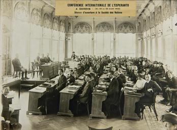 | Keywords: International Conference Regarding the Use of Esperanto WDL11591.png Artwork ru еждуна одная конфе енция по использованию эспе анто fr Conférence internationale sur l'utilisation de l'espéranto en International Conference Regarding the Use of Esperanto zh 关于使用世界语的国际会议 pt Conferência Internacional sobre o Uso do Esperanto ar مؤتمر عالمي عن استخدام الاسبرانتو ru Эспе анто является искусственным языком кото ый был создан польским в ачом-окулистом Людвиком Лаза ем Заменгофом 1859 1917 гг в 1887 году опубликовавшим б ошю у на усском польском ф анцузском и немецком языках В ней он описал эспе анто и п едложил его в качестве легко доступного вто ого языка еждуна одное эспе анто-движение возникло в 90-х годах XIX века и достигло кульминации во в емя п оведения пе вого всеми ного конг есса гово ящих на языке эспе анто в 1905 году После Пе вой ми овой войны в Лиге аций аз абатывались планы по использованию эспе анто в качестве абочего языка и екомендации к его изучению в школах но Ф анция наложила вето на эти п едложения Лига финанси овала междуна одную конфе енцию по использованию эспе анто кото ая состоялась в Женеве 18 20 ап еля 1922 года а данном снимке изоб ажена пе вая сессия конфе енции У Лиги аций было 2 абочих языка английский и ф анцузский Эта фотог афия находится в а хивах Лиги пе еданных в 1946 году О ганизации Объединенных аций и х анящихся в штаб-ква ти е ОО в Женеве В 2010 году они были включены в еест п ог аммы Ю ЕСКО Память ми а <br>Эспе анто; Г упповые по т еты; Лига аций; Память ми а; По т етные фотог афии fr L'espéranto est une langue construite inventée par l'ophtalmologiste polonais Ludwik Lazar Zamenhof 1859 1917 qui publia en 1887 un opuscule en russe en polonais en français et en allemand décrivant l'espéranto et le proposant comme une seconde langue facile à apprendre Un mouvement international espérantophone se développa dans les années 1890 aboutissant au premier Congrès mondial de l'espéranto en 1905 Après la Première Guerre mondiale la Société des Nations envisagea d'adopter l'espéranto comme langue de travail et de recommander son enseignement dans les écoles mais la France opposa son véto à de telles propositions La Société parraina une conférence internationale sur l'utilisation de l'espéranto qui se déroula à Genève du 18 au 20 avril 1922 La photographie présentée ici montre la session d'ouverture de cette conférence La Société des Nations avait deux langues de travail l'anglais et le français La photographie provient des archives de la Société des Nations qui furent transférées aux Nations Unies en 1946 et qui sont désormais conservées à l'Office des Nations Unies à Genève Ces archives furent inscrites au Registre de la Mémoire du monde de l'UNESCO en 2010 <br>Espéranto; Portraits de groupe; Société des Nations; Mémoire du monde; Portraits photographiques en Esperanto is a synthetic language devised by Polish eye doctor Ludwik Lazar Zamenhof 1859 1917 who in 1887 published a pamphlet in Russian Polish French and German describing Esperanto and proposing it as an easy-to-learn second language An international Esperanto movement developed in the 1890s culminating in the first world congress of Esperanto speakers in 1905 After World War I the League of Nations considered adopting Esperanto as a working language and recommending that it be taught in schools but proposals along these lines were vetoed by France The League sponsored an international conference regarding the use of Esperanto which took place in Geneva on April 18 20 1922 This photograph shows the opening session of the conference The League of Nations had two working languages English and French The photograph is from the archives of the League which were transferred to the United Nations in 1946 and are housed at the UN office in Geneva They were inscribed on the UNESCO Memory of the World register in 2010 <br>Esperanto; Group portraits; League of Nations; Memory of the World; Portrait photographs zh 世界语是 种人工语 (译注:又称人 语 ),由波兰 科医生路德维克·拉扎鲁·柴门 夫(Ludwik Lazar Zamenhof,1859-1917 年)发明,他于 1887 年以俄语 波兰语 法语和德语出版了 介绍世界语的小册子,并建议将它用 单易学的第二语 19 世纪 90 年代国际世界语运动不断发展, 终第 届说世界语 全球大会于 1905 年召 战后,国际联盟 虑采用世界语 为工 语 ,并建议 学校教授世界语,但按照这类 路提出的许多建议 被法国否决 1922 年 4 18 至 20 日,国际联盟 日内瓦主办了关于使用世界语的国际会议 这张照片显示了会议的 幕式 国际联盟 两种工 语 :英语和法语 此照片出自国际联盟的档案,这批档案于 1946 年转交给了联合国, 存 联合国日内瓦办事处 2010 年这批档案入 联合国教科文组织 UNESCO 的 世界记忆名录 <br>世界语; 合影照片; 国际联盟; 世界记忆; 肖像照片 pt O Esperanto 