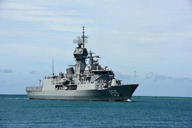 Keywords: International Ships Arrive At JBPHH For RIMPAC 2016 160628-N-QL961-018.jpg en 160628-N-QL961-018 PEARL HARBOR June 28 2016 Royal Australian Navy ship HMAS Ballarat FFH 155 arrives at Joint Base Pearl Harbor-Hickam for Rim of the Pacific 2016 Twenty-six nations more than 40 ships and submarines more than 200 aircraft and 25 000 personnel are participating in RIMPAC from June 30 to Aug 4 in and around the Hawaiian Islands and Southern California The world's largest international maritime exercise RIMPAC provides a unique training opportunity that helps participants foster and sustain the cooperative relationships that are critical to ensuring the safety of sea lanes and security on the world's oceans RIMPAC 2016 is the 25th exercise in the series that began in 1971 U S Navy Photo By Mass Communication Specialist 1st Class Phillip Pavlovich/RELEASED <br>Unit Navy Public Affairs Support Element Detachment Hawaii 2016-06-28 Petty Officer 1st Class Phillip Pavlovich https //www dvidshub net/image/2696871/international-ships-arrive-jbphh-rimpac-2016 160628-N-QL961-018 2016-06-29 03 31 PEARL HARBOR HI US PD-USGov-Military-Navy Foreign warships at Pearl Harbor HMAS Ballarat FFH 155 RIMPAC 2016 Images from DoD uploaded by Fæ |