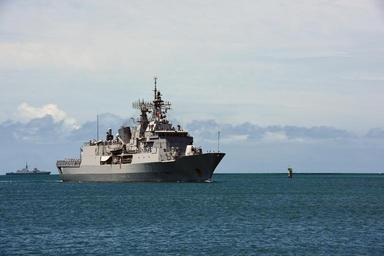 Keywords: International Ships Arrive At JBPHH For RIMPAC 2016 160628-N-QL961-048.jpg en 160628-N-QL961-048 PEARL HARBOR June 28 2016 Royal New Zealand Navy ship HMNZS Te Kaha FFH 155 arrives at Joint Base Pearl Harbor-Hickam for Rim of the Pacific 2016 Twenty-six nations more than 40 ships and submarines more than 200 aircraft and 25 000 personnel are participating in RIMPAC from June 30 to Aug 4 in and around the Hawaiian Islands and Southern California The world's largest international maritime exercise RIMPAC provides a unique training opportunity that helps participants foster and sustain the cooperative relationships that are critical to ensuring the safety of sea lanes and security on the world's oceans RIMPAC 2016 is the 25th exercise in the series that began in 1971 U S Navy Photo By Mass Communication Specialist 1st Class Phillip Pavlovich/RELEASED <br>Unit Navy Public Affairs Support Element Detachment Hawaii 2016-06-28 Petty Officer 1st Class Phillip Pavlovich https //www dvidshub net/image/2696874/international-ships-arrive-jbphh-rimpac-2016 160628-N-QL961-048 2016-06-29 03 31 PEARL HARBOR HI US PD-USGov-Military-Navy Foreign warships at Pearl Harbor RIMPAC 2016 Images from DoD uploaded by Fæ HMNZS Te Kaha F77 |