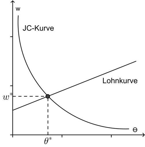 Keywords: Intersection of wage and job creation curve.svg en Intersection wage curve and job creation curve equilibrium wage and market tightness 2012-02-15 own Pill validSVG cc-zero Uploaded with UploadWizard Macroeconomic diagrams